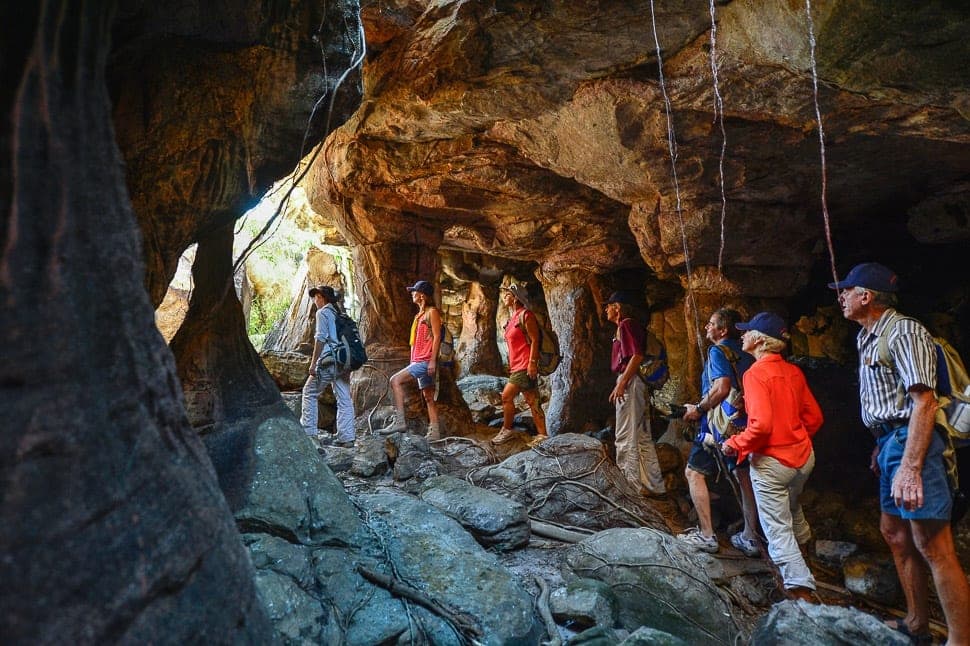 Today we jump into the open-back Toyotas and continue exploring the wonderland that is Mount Borradaile. Learn about the variety of techniques used in rock paintings as the styles changed over thousands of years of occupation and storytelling. We’ll also wander through various occupation sites and view a range of artefacts from when these sites were still in use.