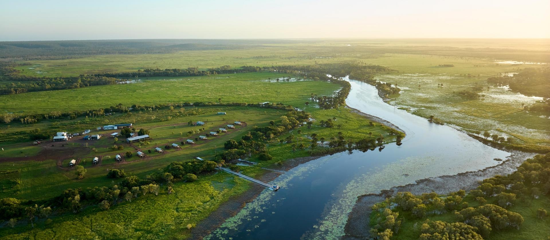 After lunch, it’s time to explore the incredible wetlands of the Cooper Creek. Admire the prolific birdlife and massive crocodiles sunning themselves on the banks as you discover lagoons that seem more from a story book than from real life. As the sun seeks the horizon and sets over the floodplain, enjoy a glass of wine and nibbles before returning to the lodge for our final night with Davidson’s Arnhem Land Safaris. Meals (B.L.D)