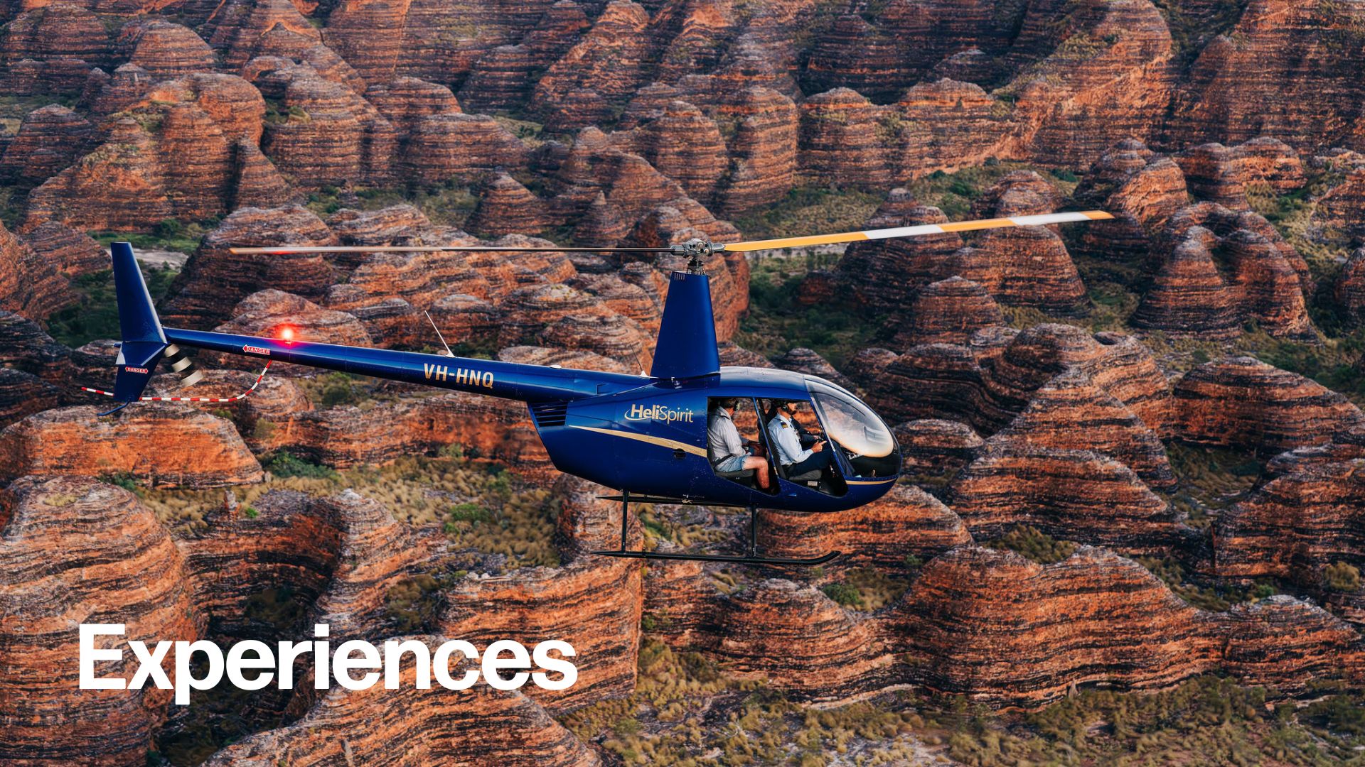 Today we explore the wonders of Purnululu, including its unique orange and black beehive shaped domes. First up, enjoy a breathtaking 18-minute scenic helicopter flight over the park with a bird's eye view of its astounding natural features. Afterwards, enjoy a walk along Piccaninny Creek to the mind boggling natural amphitheatre of Cathedral Gorge and then follow the 'dome trail' for a closer inspection of the park's unique geological formations.
