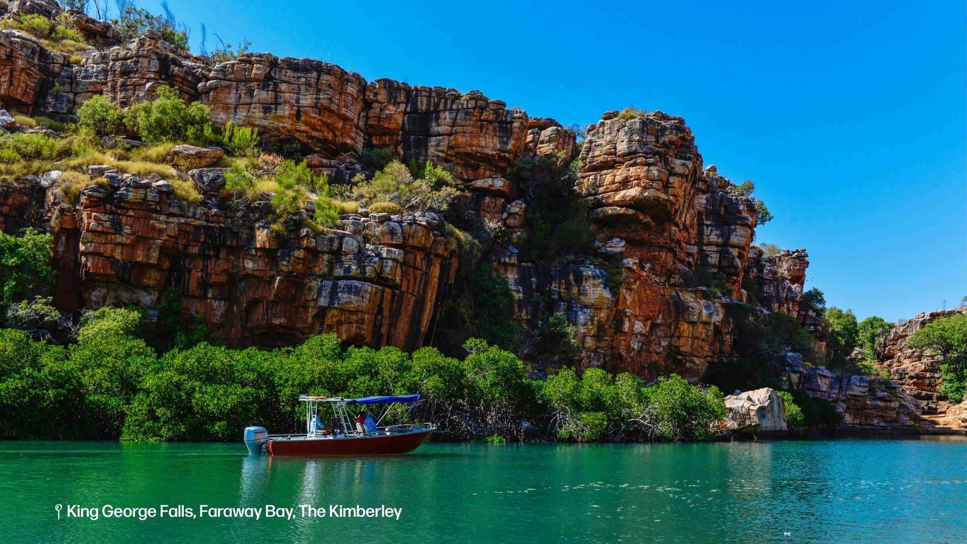 Faraway Bay is an award-winning coastal lodge nestled on a rocky hilltop overlooking the turquoise Timor Sea. Located 280 kilometres north-west of Kununurra, this far north area of Western Australia is a remote and spellbinding part of the Kimberley. With King George Falls just a short boat trip away, this unique wilderness retreat offers an experience you will never forget.